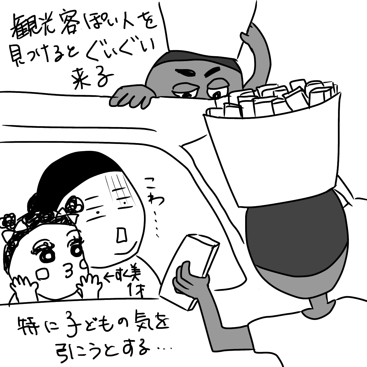 現地の人のように要らないと軽く手を払う仕草がうまくなりました。