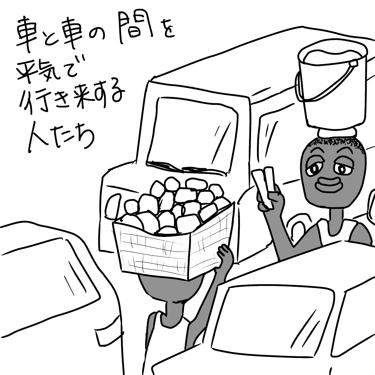 マーケットとは違う、車が走る路上がそのまま売り場になっているガーナ。